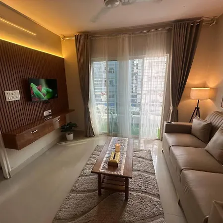 Staying at Nk Apartments - Full Furnished 2Bhks, guests have access to a balcony and a dressing area equipped with climate control and soundproof walls. To ensure your comfort, a bat, a separate toilet, and a shower are provided at this accommodation. Bath sheets are also included in the bathroom.